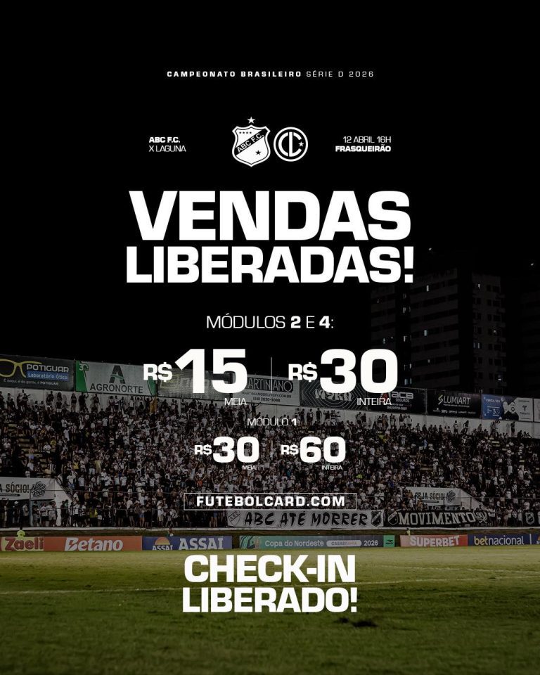 Leia mais Ingressos Iniciada a venda de ingressos e liberado o check-in dos sócios para ABC x Laguna 9 de abril de 2026