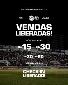 A torcida abecedista já poderá comprar o ingresso de forma online, através do site da FutebolCard, o www.futebolcard.com. O ingresso para os módulos 2 e 4 custa R$ 15,00 (Meia) e R$ 30,00 (Inteira), e para o módulo 1, R$ 30,00 (Meia) e R$ 60,00 (Inteira).